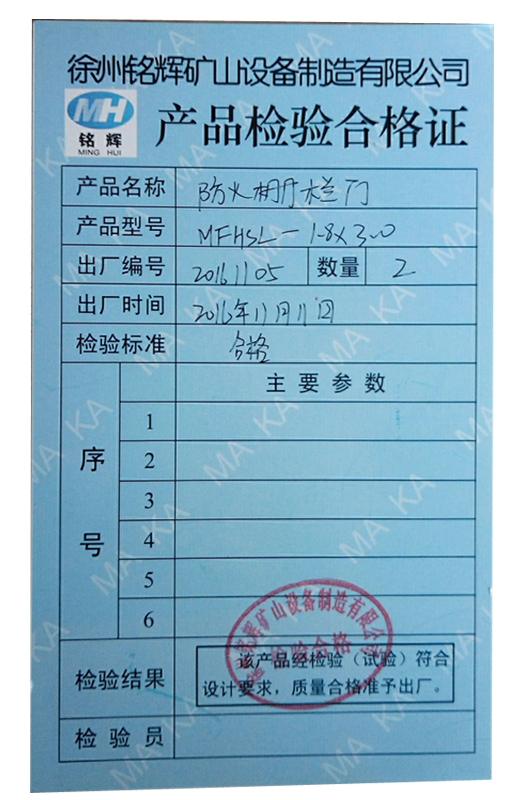 本防火及柵欄兩用門為煤炭工業(yè)部武漢煤礦設(shè)計(jì)研究院設(shè)計(jì),產(chǎn)品質(zhì)量標(biāo)準(zhǔn)和檢測標(biāo)準(zhǔn)嚴(yán)格執(zhí)行Q/WMS-3011-2005《防火及柵欄兩用門》。